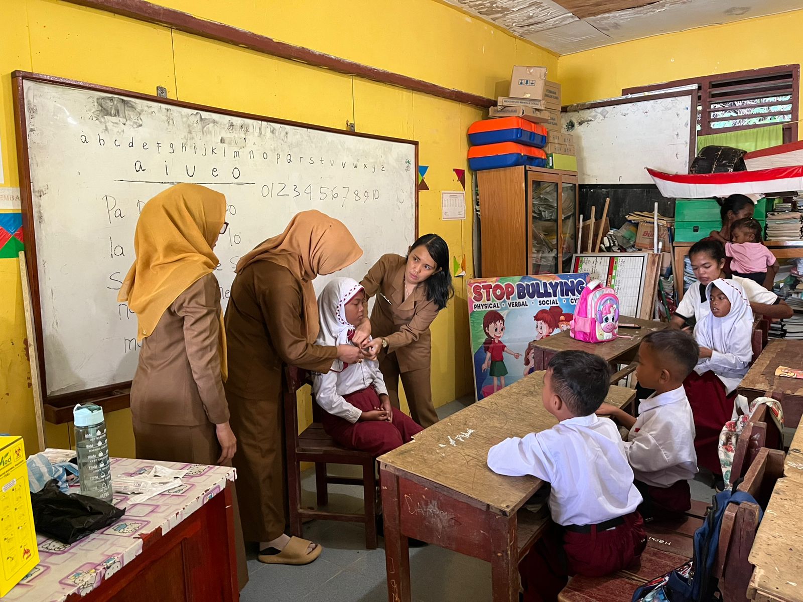 Selain memberikan imunisasi, tim kesehatan juga melakukan penyuluhan mengenai pentingnya imunisasi kepada siswa dan guru agar lebih memahami manfaatnya dalam pencegahan penyakit. Para siswa tampak antusias mengikuti kegiatan, bahkan sebagian didampingi langsung oleh orang tua mereka.